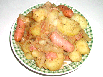 ジャガイモ 玉ネギ ベーコン ウインナー 塩 黒コショウ