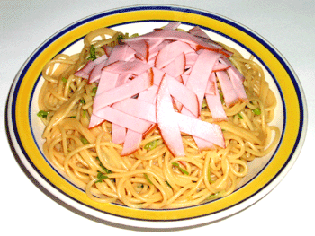 パスタ ハム 刻みネギ 塩 バター だし醤油